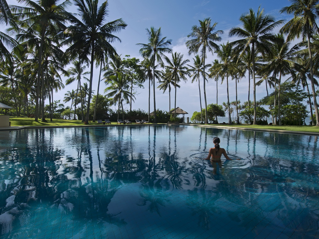 Situated on Buitan Beach within the regency of Karangasem, Alila Manggis is close to the town of Candidasa; Padang Bali harbor is just a 10-minute away. Bali International Airport is a 1.5-hour drive from the hotel.