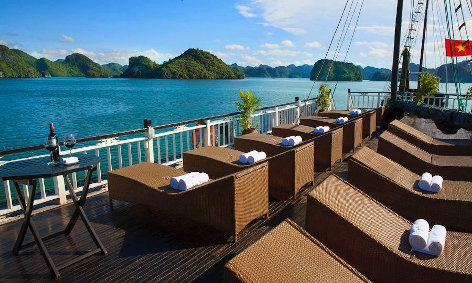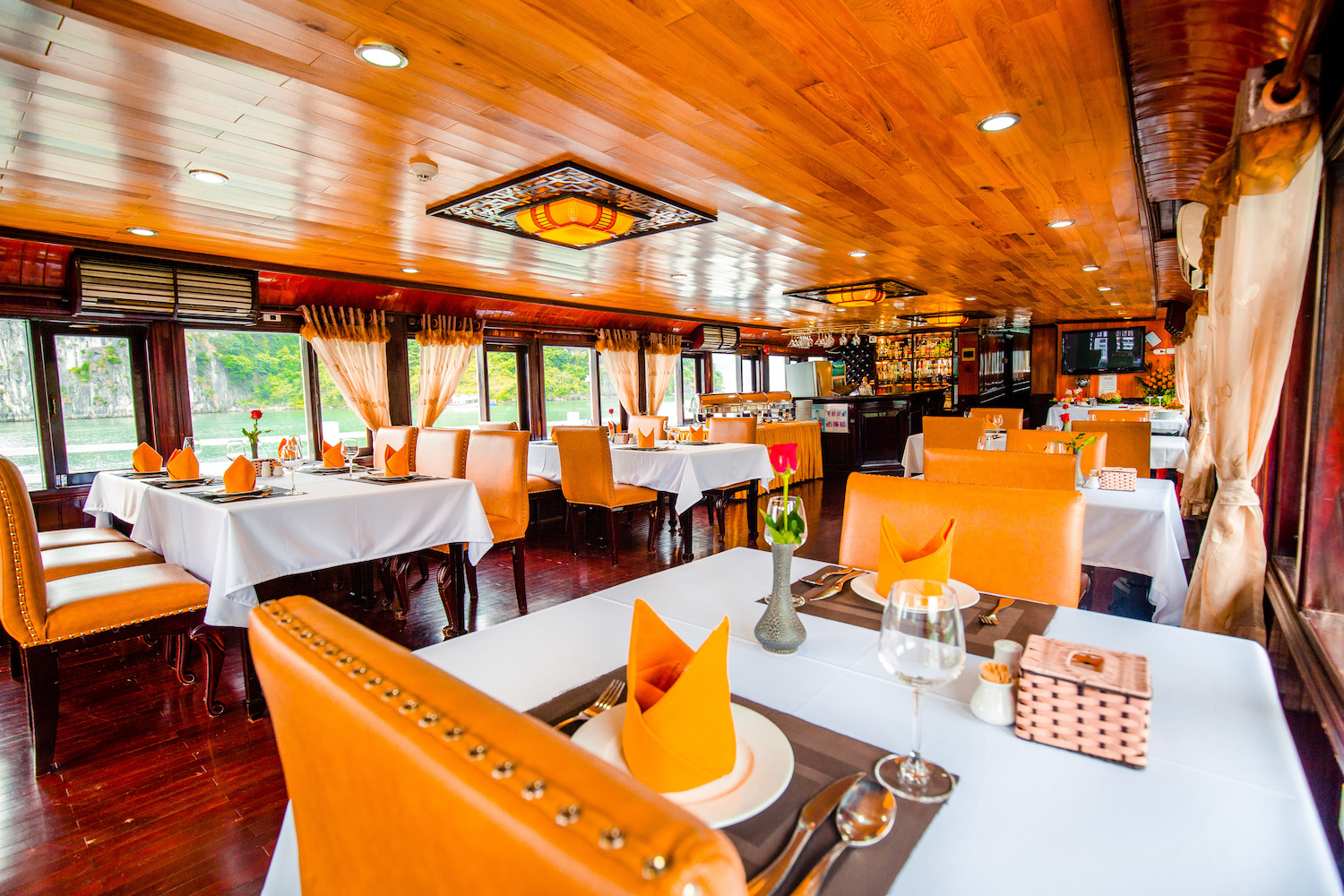 Experience the ultimate retreat at Victory Cruise Halong Bay, where modern and elegantly designed rooms provide breathtaking views of the stunning Halong Bay. Immerse yourself in a culinary journey as the cruise offers a delectable array of Vietnamese and international delicacies through its full board meal service. Beyond dining, guests can indulge in various recreational activities, engaging cooking shows, captivating attractions, and even participate in a complimentary early morning tai chi class.