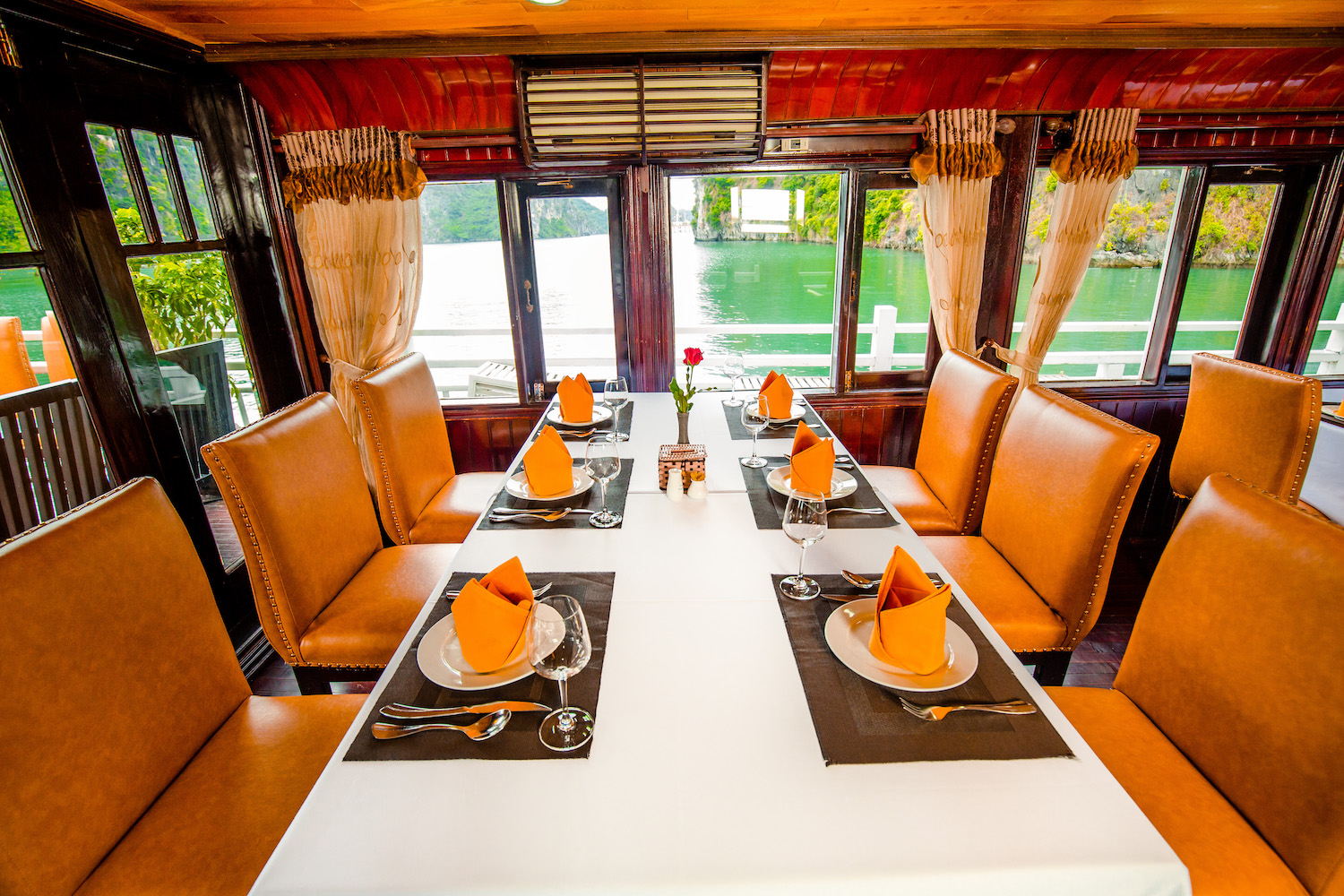 Situated just a brief 30-minute voyage away from Ga Choi Island, the cruise ship's location offers convenience and accessibility. Halong Bay is easily reachable with a scenic 1.5-hour drive from Turtle Island, while the journey from Hanoi takes approximately 3.5 hours. For those seeking the allure of Cat Ba Island, a mere 4-hour voyage will transport you there.