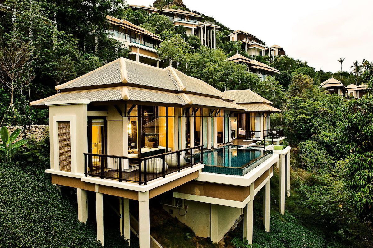 Nestled on a terraced hillside overlooking Lamai Bay, Banyan Tree Samui offers a serene retreat in a private cove. The resort is conveniently situated just a 30-minute drive from Samui Airport, 2 minutes from Beach Republic Club, and 10 minutes from the picturesque Grandfather and Grandmother Rocks.   Exuding luxury, the villas boast private terraces with sweeping ocean views or surrounded by lush tropical greenery. Each villa features spacious living areas, gardens, private infinity pools, and modern amenities such as free Wi-Fi, a flat-screen TV, and tea and coffee makers. Some villas also offer captivating bay views.   Indulge in a delightful buffet breakfast with a variety of international dishes at The Edge, or savor the flavors of authentic Thai cuisine at Saffron restaurant. Additionally, the resort offers various dining options, including the inviting Lobby Lounge, the refreshing Pool Bar, and Sands, Banyan Tree's premier beach grill.   Guests can enjoy a refreshing dip in the infinity pool, stay active at the well-equipped fitness center, and unwind with rejuvenating treatments at the spa, offering a complete relaxation experience.