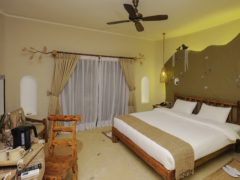Other amenities include meeting rooms, a business center, a tour desk, a library, a massage center, and luggage storage facilities. The lodge offers exciting activities such as nature walks, canoeing, cultural performances, bullock cart village visit, and jeep safari.