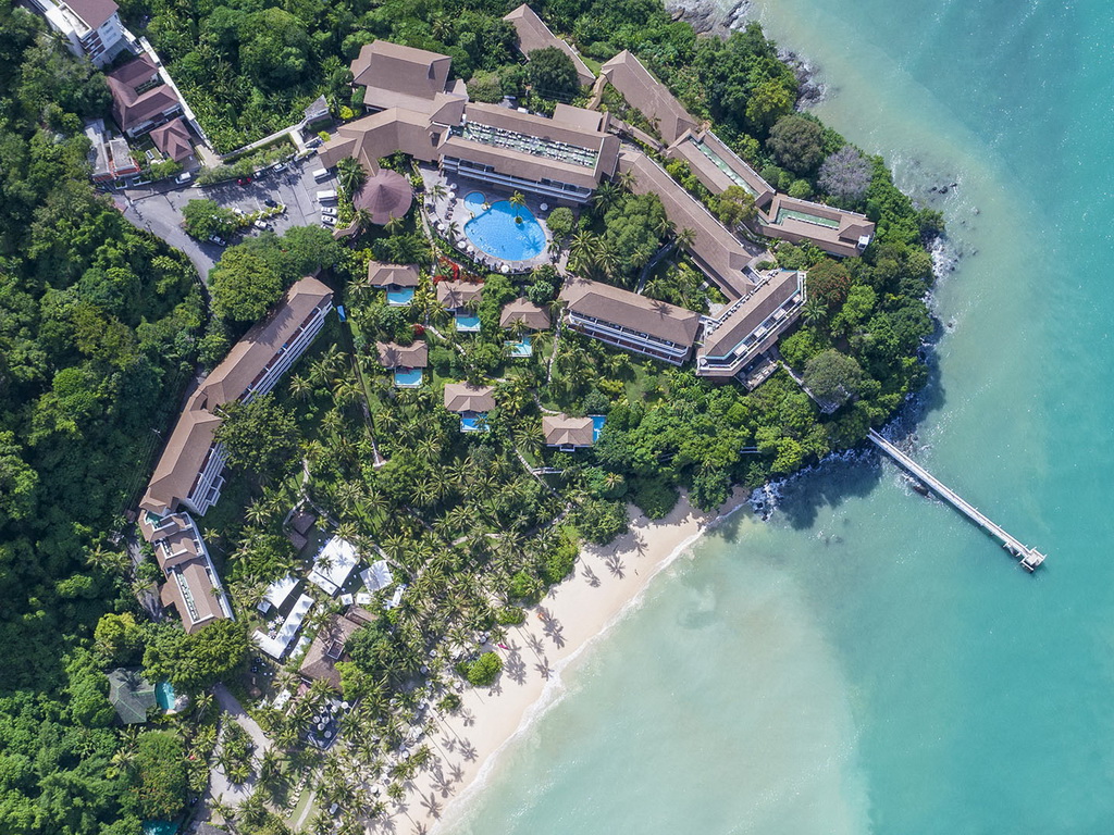Built on a hill with a panoramic view of the Andaman Sea, Cape Panwa Hotel and Spa is located at the southern tip of the east coast of Phuket Island on Panwa Beach, a 10-minute drive from central Phuket and a 50-minute drive from Phuket International Airport.