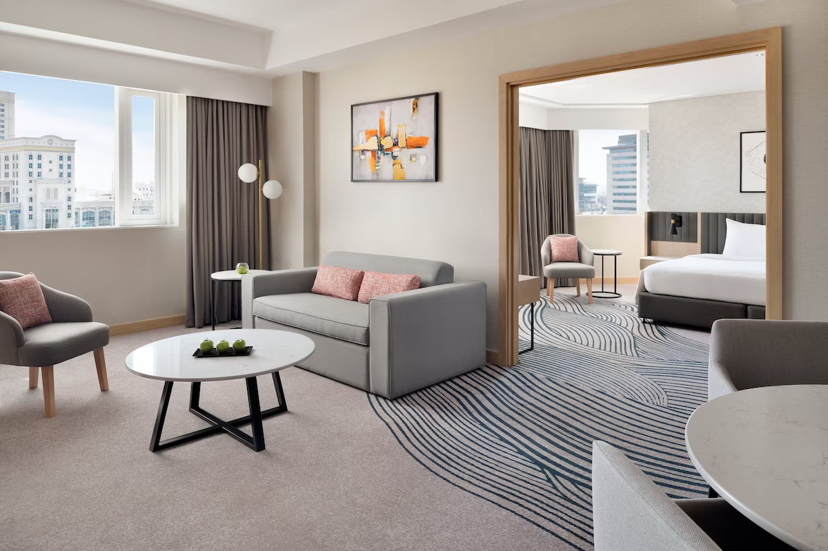 Crowne Plaza Jumeirah is centrally located in the heart of Jumeirah 1 on Al Mina Road, near Sheikh Zayed Road, Jumeirah Beach, Port Rashid, and La Mer Dubai. Dubai International Airport is about 6.2 miles from the hotel, and Burj Khalifa is 4.3 miles away.   All the 252 rooms and suites feature mahogany furnishings with a contemporary décor. Each room has a 55" flat-screen TV with IPTV channels, a mini-bar, and a tea/coffee maker.   The hotel offers a wide range of culinary options, including a Coffee lounge and coworking space, the signature restaurant, Ginger, which offers a Pan Asian dining experience, and The Docks gastropub, a beloved British-style pub.   Recreational facilities include a pool to enjoy a refreshing cocktail, a spa with five treatment rooms, a whirlpool, a Moroccan bath, and a sauna.