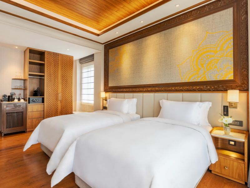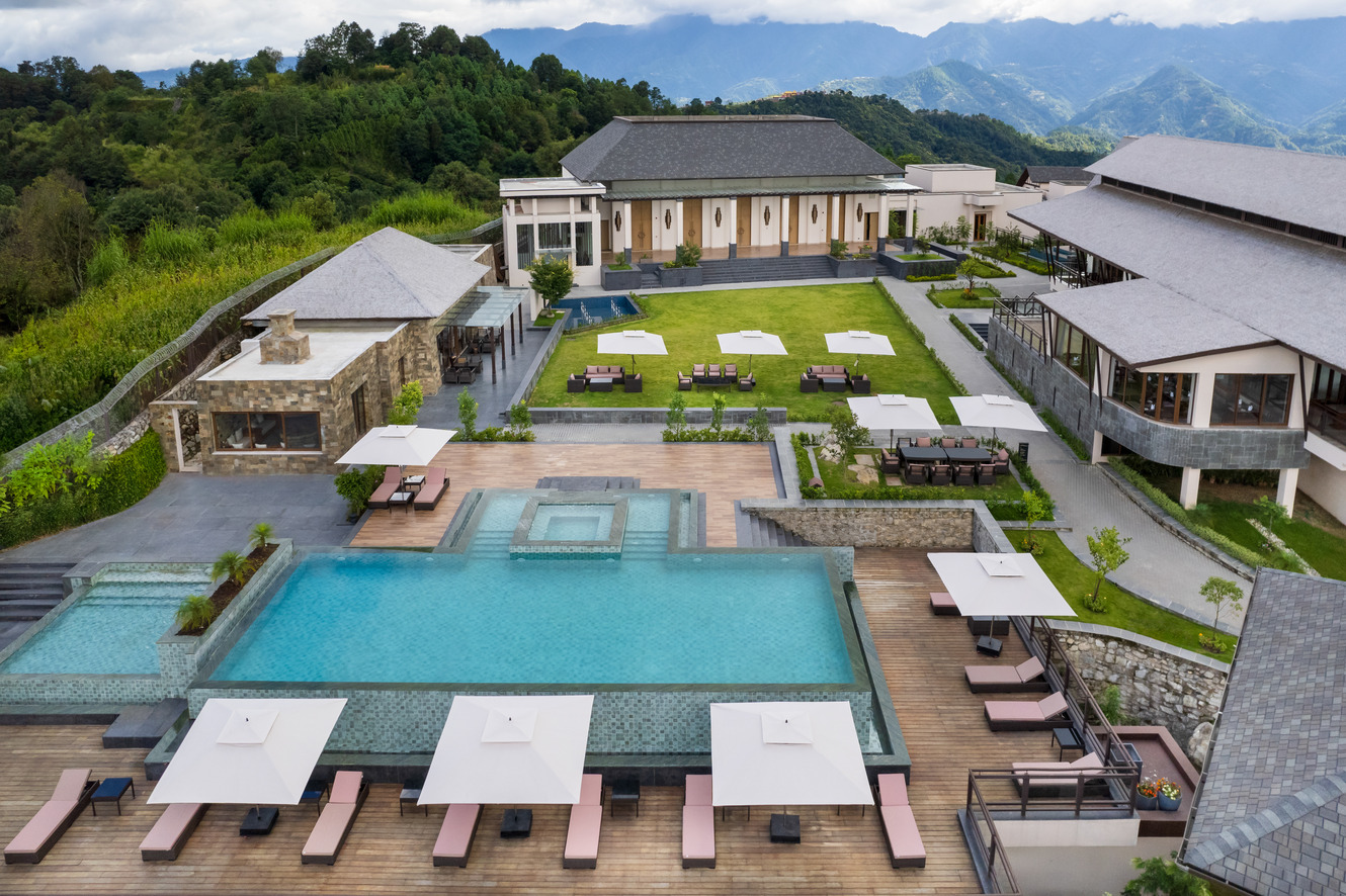 Dusit Thani Himalayan Resort Dhulikhel is a serene luxury retreat set in the Himalayan foothills just over an hour from Kathmandu, offering sweeping mountain and valley views in a peaceful natural setting. The resort features elegantly designed rooms, suites, and villas—many with private balconies—along with an infinity pool, spa, outdoor Jacuzzi, steam room, and fitness center under Dusit’s signature wellness concept. Guests enjoy refined dining experiences alongside easy access to cultural and spiritual sites such as Namobuddha, making it an ideal escape for relaxation, wellness, and Himalayan-inspired luxury.