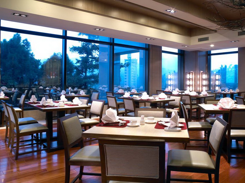 Six restaurants provide a wide range of cuisines, including an international buffet, Teppanyaki, classic Chinese, Dim Sum, afternoon tea, and drinks at the grandiose Lobby Lounge rooftop bar (Sky Lounge).