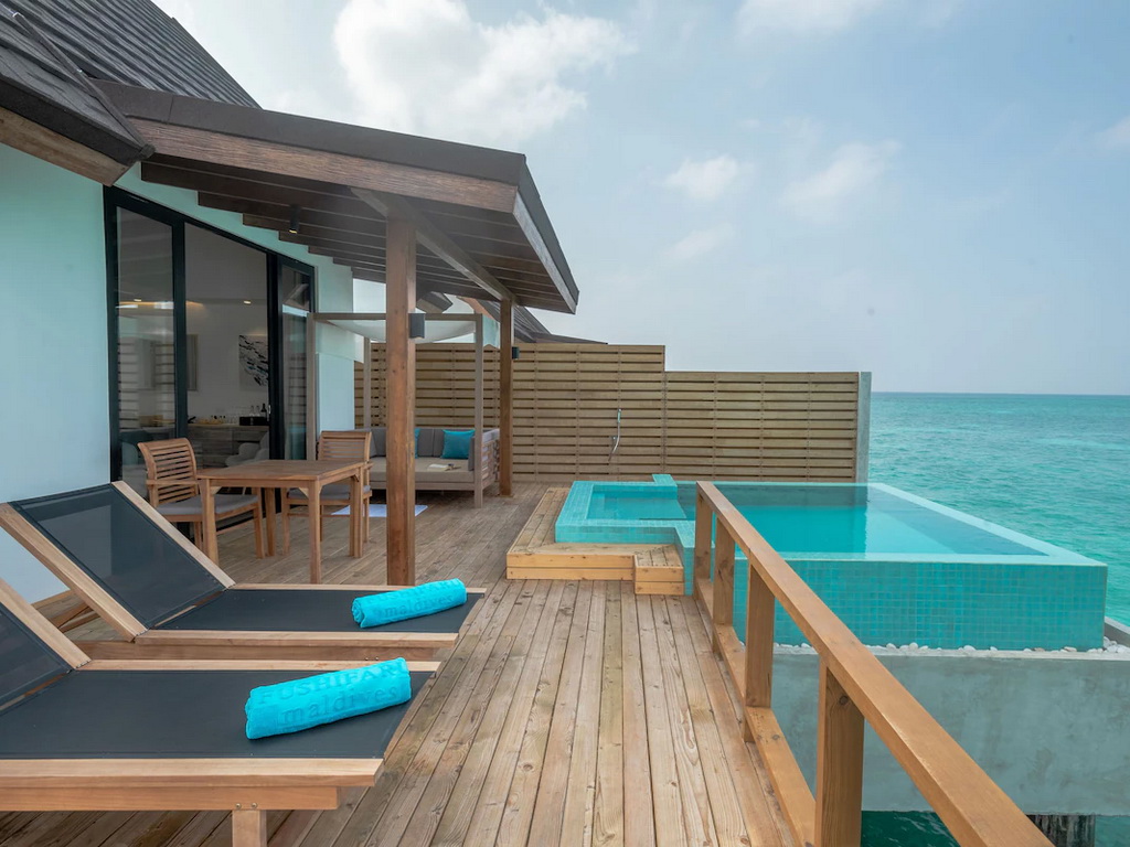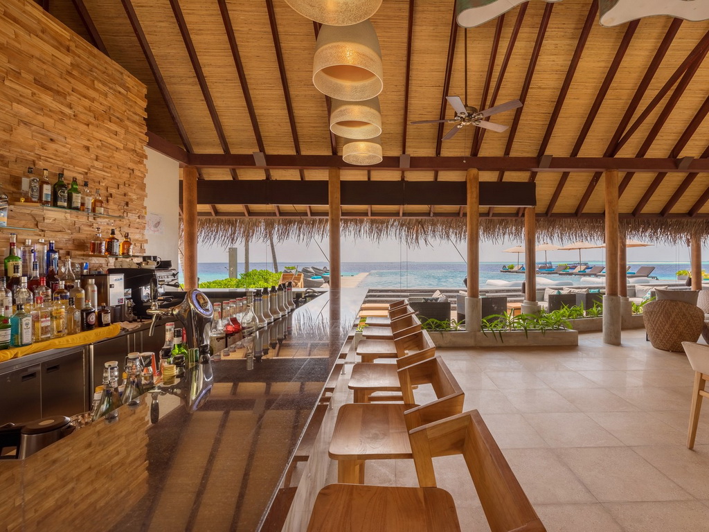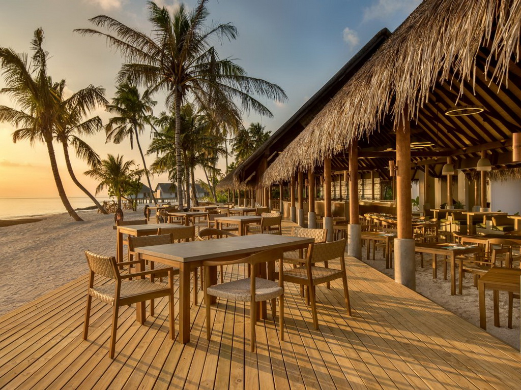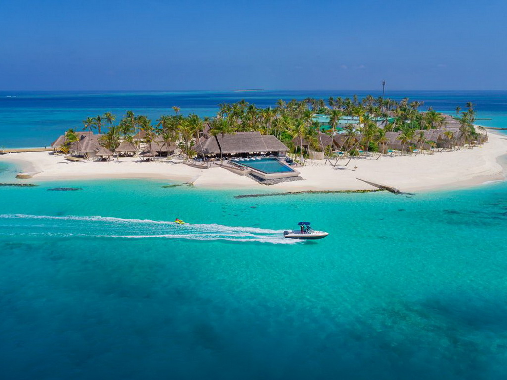 Located on the eastern edge of Faadhippolhu (Lhaviyani Atoll), Fushifaru Maldives is a 35-minute seaplane ride from Male. This small beautiful island sits between two channels connecting the atoll’s inner lagoon to the outer sea. The resort featured 49 beach and water villas with carefully selected amenities, including an indoor daybed, air conditioning, ceiling fan, mini-bar, in-room safe, Espresso machine and tea, IPTV, iron and iron board, hair dryer, and WiFi. The hotel offers a  wide selection of dining options. The Korakali serves international cuisine, Raakani Grill offers Asian recipes focusing on the finest local varieties of seafood, and Fanihandhi Bar serves signature cocktails, mocktails, and light meals. The hotel also has an outdoor swimming pool and spa and offers various exciting water activities.