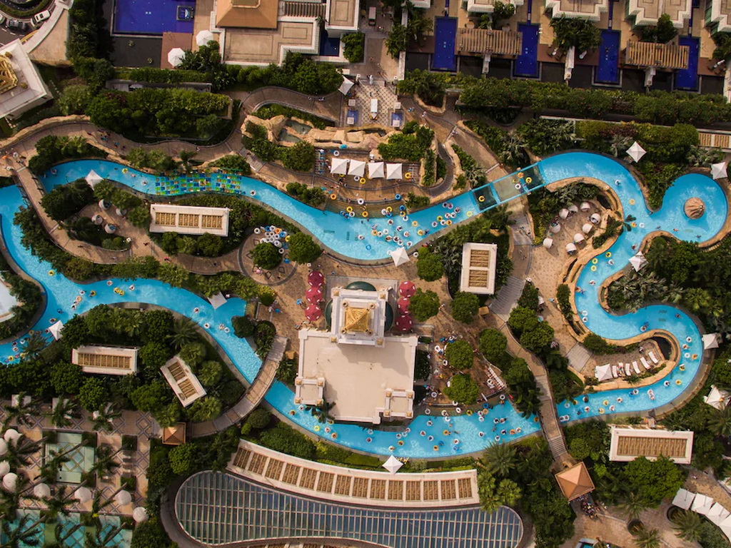 Other hotel facilities include a casino, retail shopping options, a fitness center, a spa, a swimming pool, and cinemas.
