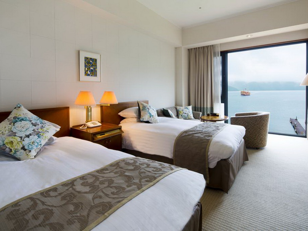 Hakone Hotel is also known as Fujiya Hotel Lake View Annex. The hotel is located on the shore of Lake Ashi in the town of Hakone, approximately 20 miles from Mt. Fuji, 35 minutes drive from Odawara Station, 7 miles from Atami, and 50 miles from Tokyo Haneda International Airport. Equipped with modern facilities, the hotel offers Japanese and Western-style rooms with large windows overlooking the lake – some rooms also have views of Mount Fuji. Il Miraggio, the lakeside restaurant, offers European cuisine and the Yamazakura restaurant serves Teppanyaki dishes. At sunset, guests can unwind at the hotel’s hot spring open-air bath, Taikan-no-yu. There is free shuttle service, a 24-hour front desk, room service, a hot spring bath, and a gift shop at the property.