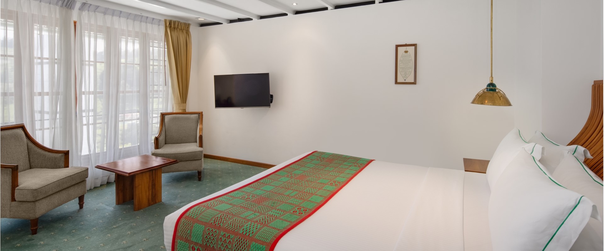 Nestled in the picturesque mountains of Nuwara Eliya, the Heritance Tea Factory is a serene retreat conveniently situated just a 2.5-hour drive away from the hilly capital of Kandy.   Cozy guestrooms provide a warm and inviting atmosphere, with amenities such as a well-stocked mini-bar, cable TV, and complimentary organic tea leaves. The private bathrooms are designed for your comfort, featuring a bathtub and a refreshing rain shower.   Indulge your taste buds at the Kenmare restaurant, where Heritance Tea Factory offers the ultimate dining experience. Guests can savor a delightful array of Eastern and Western dishes, and for a truly unique experience, dine in a converted train carriage showcasing a menu of Western and European meals.   The resort offers leisure activities with mini golf and Billiards facilities, embracing the charm of true colonial style. Guests are also invited to maintain their fitness routines in the well-equipped fitness room.