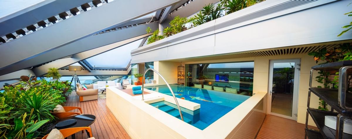 Set in the iconic Parkview Green shopping and office complex, around a 5-minute stroll from Shi Mao Tian Jie, Hotel Éclat Beijing is a 10-minute walk from Dongdaqiao Subway Station (Line 6) and around a 5-minute drive to Yong'anli Subway Station (Line 1). It takes a 10-minute drive to the bustling Sanlitun Village. Tiananmen Square and the CBD are both around a 15-minute drive away. Beijing Capital International Airport is around a 35-minute drive away. Rooms feature floor-to-ceiling windows, contemporary furnishings, Wi-Fi, minibars, and flat-screen TVs. Suites offer living rooms and private pools, while upgraded rooms provide massage chairs and terraces. Various dining options are available, from Cantonese cuisine to tapas and fine dining restaurants. The hotel also offers a bar, a gym, and a business center, as well as breakfast and event space.