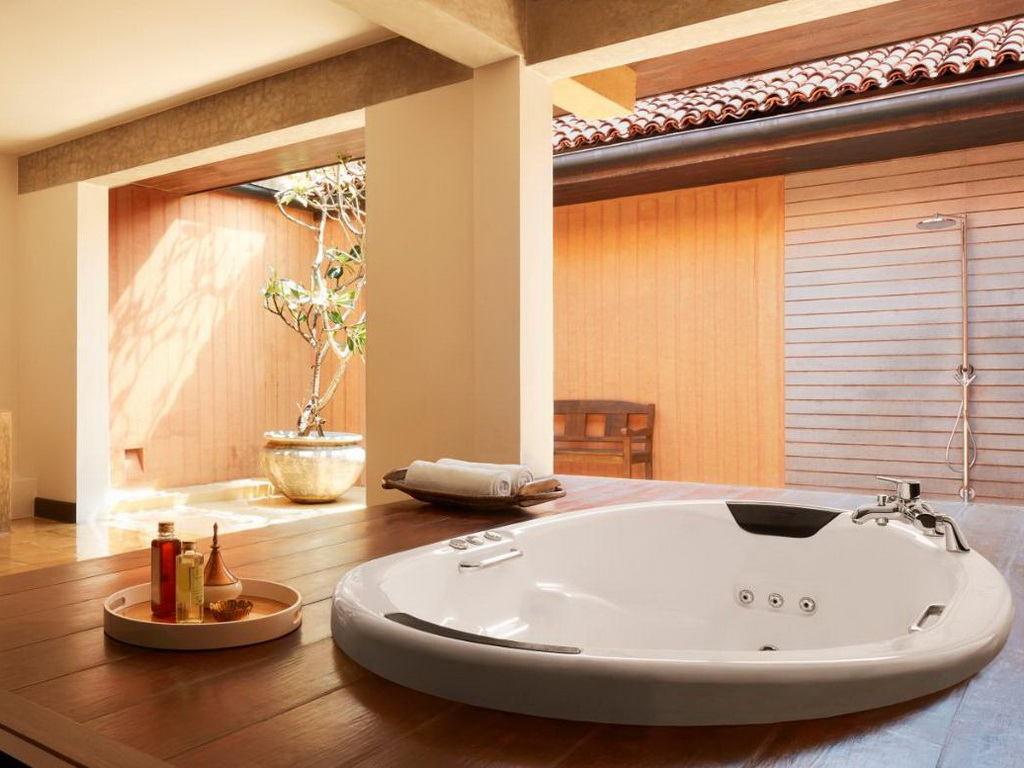 The hotel has two swimming pools, a tennis court, a spa, and a fitness center.