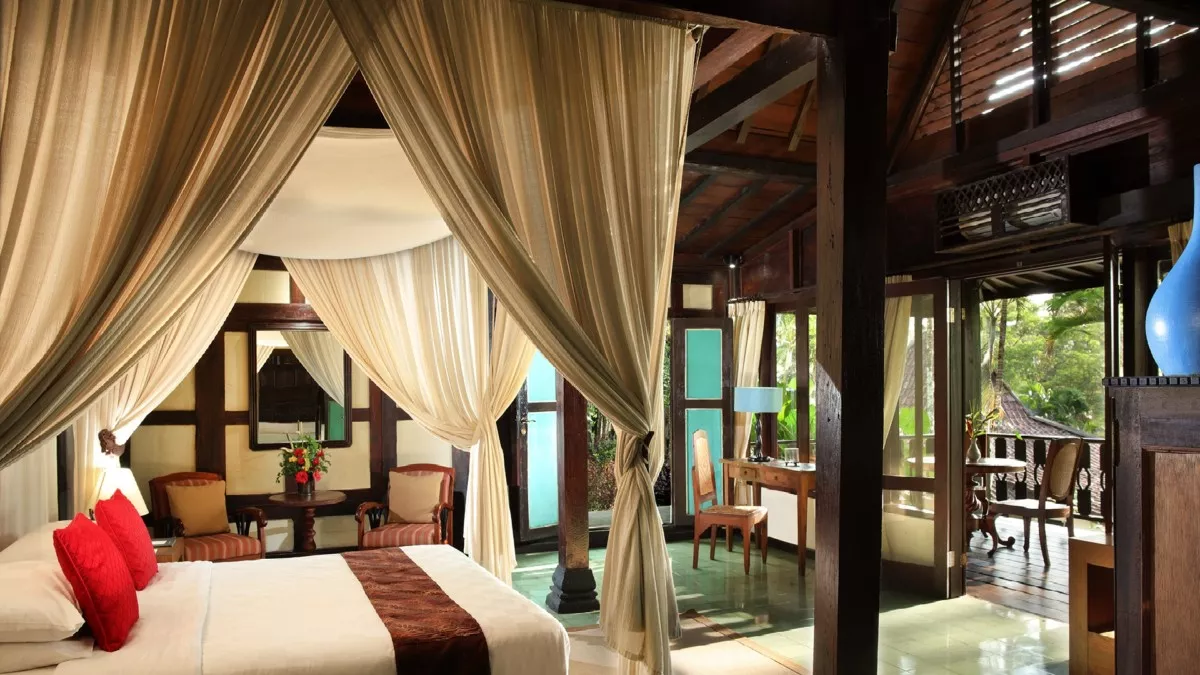 Guests can indulge in culinary delights at the resort's restaurant, which serves a blend of Mediterranean and Indonesian cuisines, featuring organic vegetables sourced from MesaStila Resort and Spa's garden.