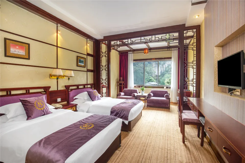 The hotel's convenient location provides easy access to the area's many attractions, including the stunning karst mountains and scenic rivers. The hotel offers spacious and well-appointed guest rooms, each featuring contemporary decor and modern amenities. Guests can enjoy the hotel's on-site restaurant serving a range of Chinese and Western dishes and the hotel's fitness center, indoor pool, and spa facilities.