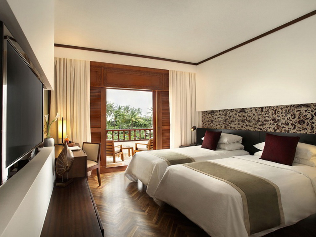Authentically Balinese, the Nusa Dua Beach Hotel & Spa is located on a beautiful expanse of white sand beachfront and 5.6 miles from Ngurah Rai International Airport. All guest rooms, suites, and villas embody charming Balinese ambiance. Each accommodation is air conditioned and offers stunning views of tropical gardens, pools, or the ocean. Each room features a satellite TV, tea/coffee-making facilities, and a safety deposit box. Other hotel facilities include a spa, five themed restaurants, Raja’s Balinese restaurant, and the beachfront Tamarind Kitchen and Lounge. The Sports Center also offers tennis, squash, and basketball courts, a fully equipped gym, and air-conditioned rooms for aerobic and yoga classes. Free WiFi is accessible throughout the property.