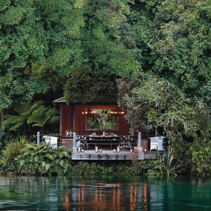 Huka Lodge is set among established gardens along the banks of the surging Waikato River near Lake T...