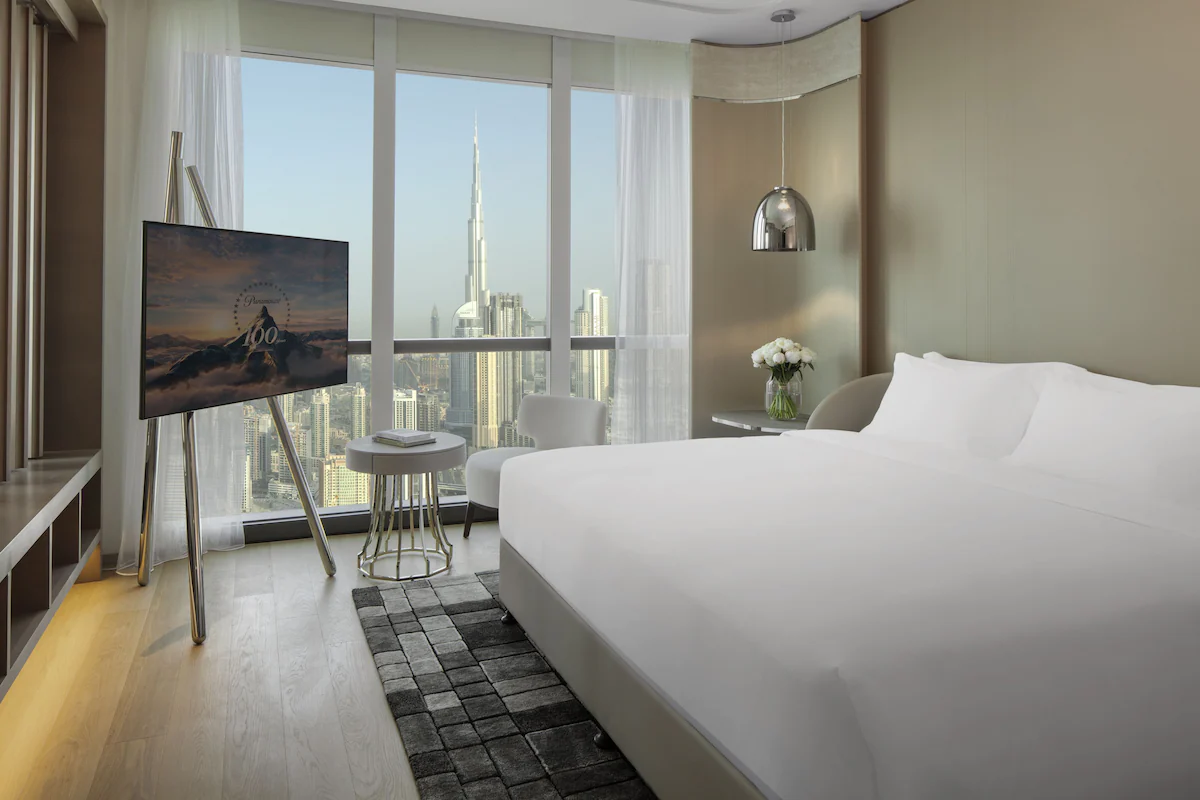 Set in the heart of Dubai's dynamic Business Bay district, 10 miles from the Dubai International Airport, The Paramount Hotel Dubai is 1.5 miles from The Dubai Mall and 1.7 miles from The Burj Khalifa. Dubai Water Canal is within walking distance, and City Walk Mall is three miles away.   Hollywood-themed rooms feature movie stars' mirrors, wardrobes, a flat-screen TV, WiFi, a mini fridge, Nespresso machines, sitting areas, and marble bathrooms with free-standing tubs and rainfall showers.   Dining options include two restaurants, two bars, a patisserie, and a relaxed cafe.   The hotel has an outdoor resort-style swimming pool, Celebrity spa, fitness center, sauna, and children's playground.   There's also a spa, an outdoor pool, a gym, and a private cinema.