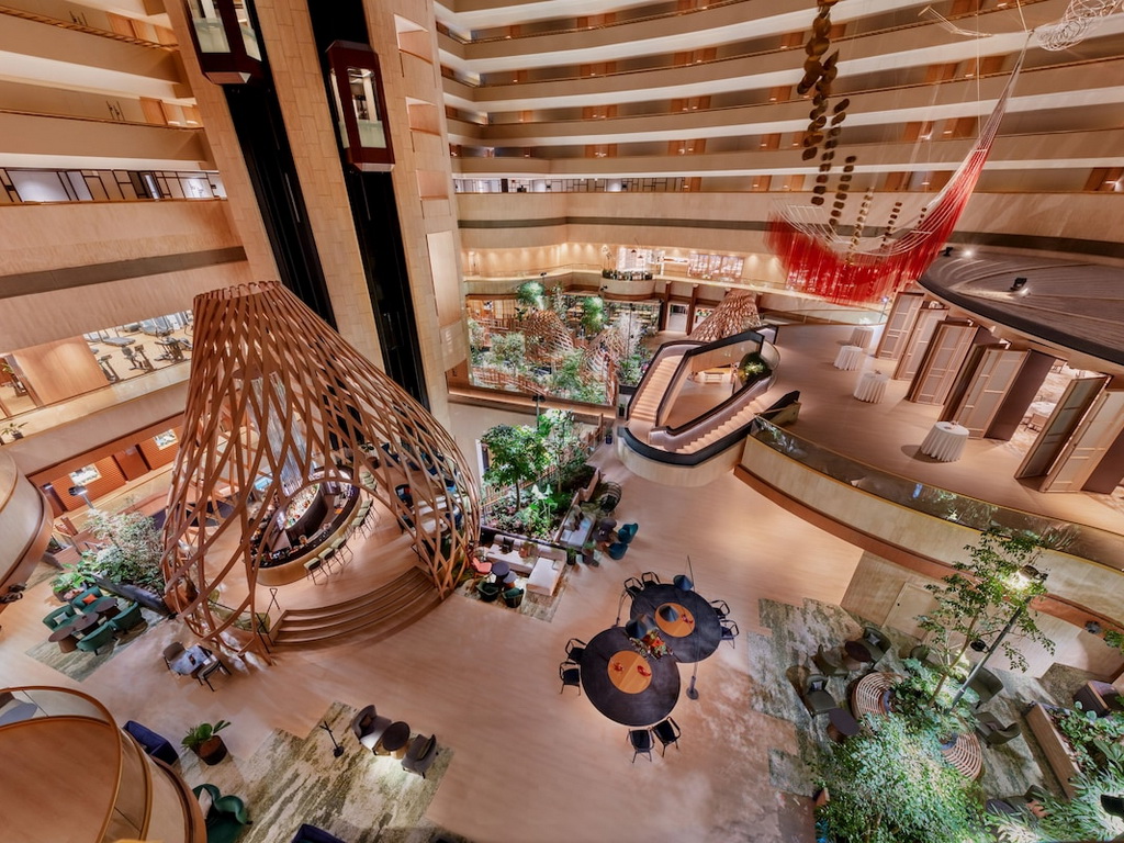 The hotel also has an outdoor pool, a 24-hour fitness center, a children’s playroom, and a spa.