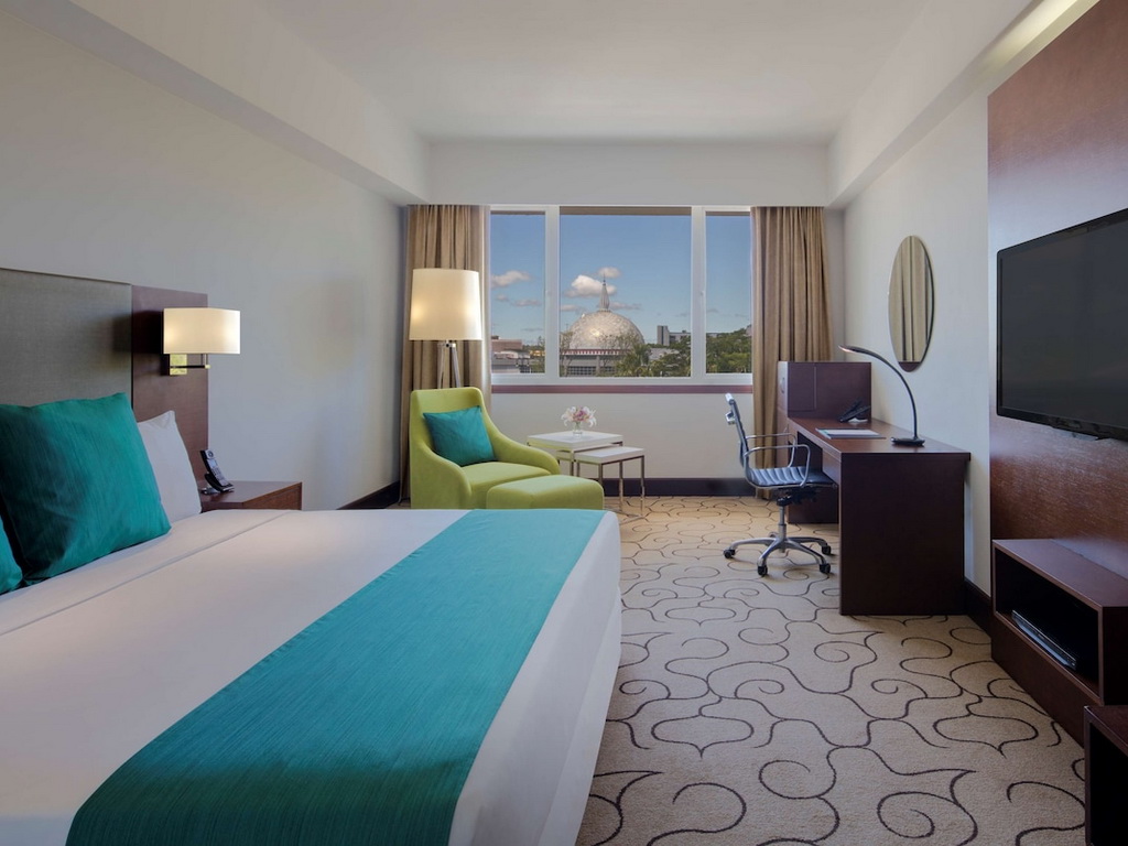 Situated in Brunei's capital of Bandar Seri Begawan, within walking distance of the city's best sights, Radisson Hotel Brunei Darussalam is about 11 minutes from Brunei International Airport and a 3-minute walk to Royal Regalia Museum. Each guest room features a 40-inch LED TV, a mini-bar, an expansive work desk, coffee & tea-making facilities, an in-room safe, a hairdryer, and WiFi. Radisson Hotel Brunei Darussalam offers dining options, including Indian cuisine, at the Riwaz Restaurant. Tasek Brasserie features a Western and Asian menu for breakfast, lunch, and dinner. Other hotel facilities include a spa, a fitness center, and an outdoor swimming pool.