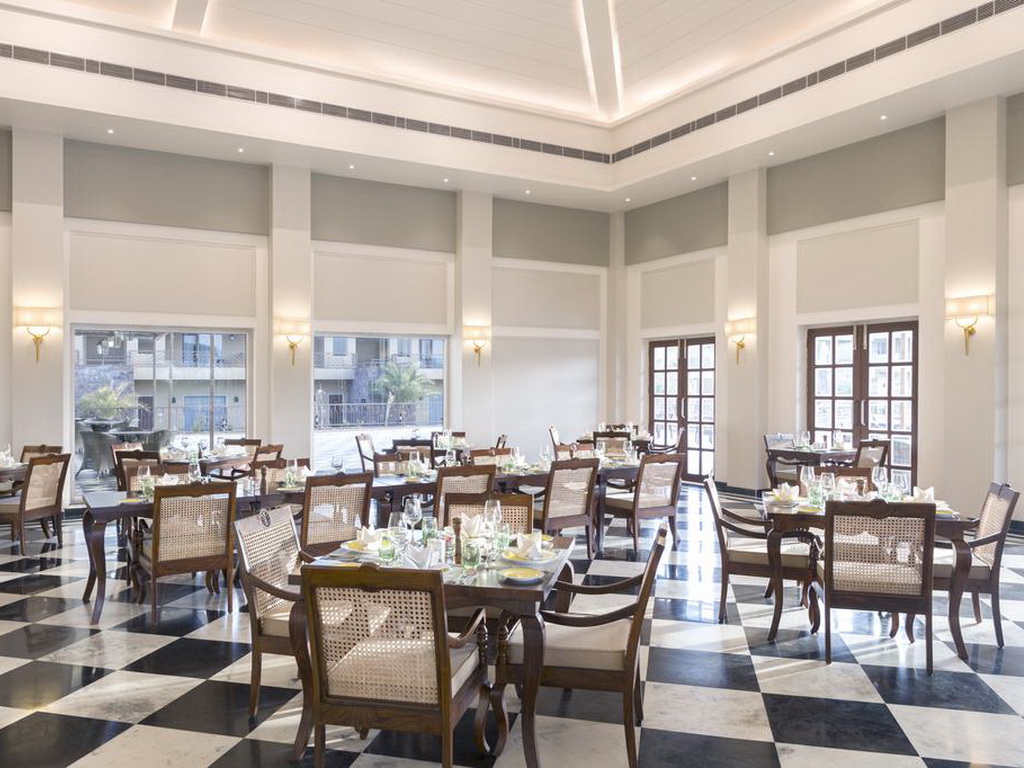 The restaurant serves a wide variety of Western and Indian cuisine. The Bar serves a fine selection of spirits, wines, and cocktails.