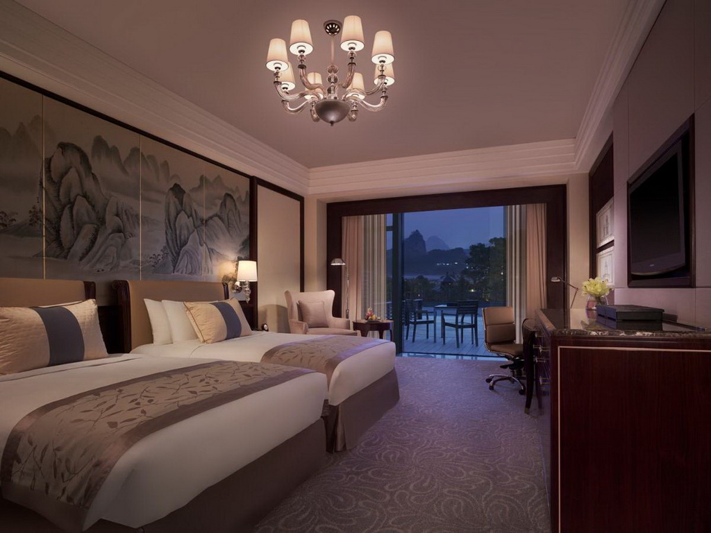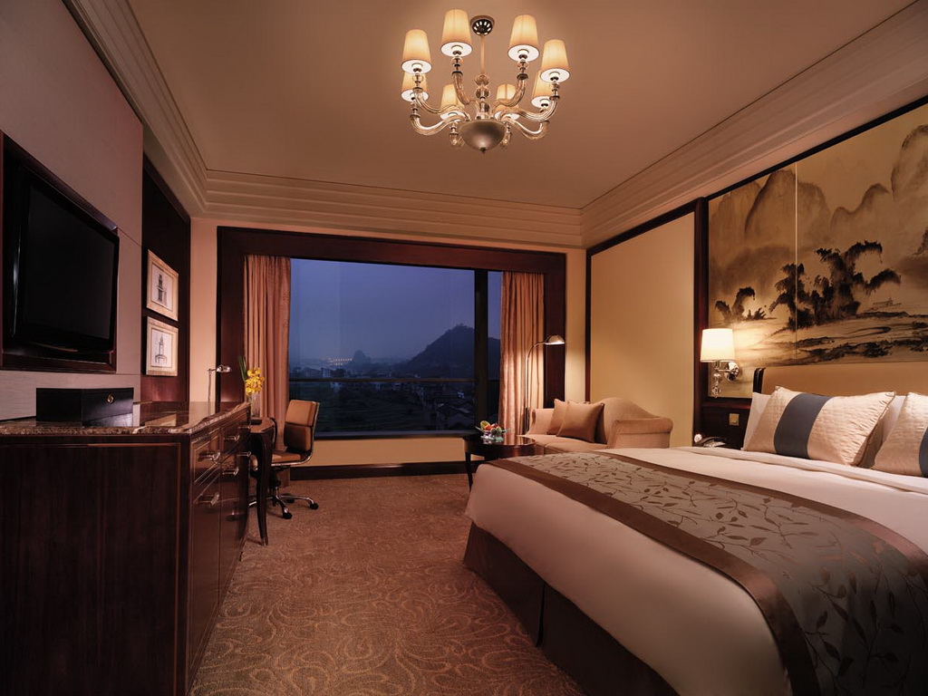 All 449 elegantly appointed guest rooms and suites provide beautiful views of the Li River or the hotel’s lush landscaped gardens. Each room features WiFi, s 37-inch LCD TVcoffee/tea-making facilities, a mini-bar, an in-room safe, a hairdryer, an iron, and an ironing board.
