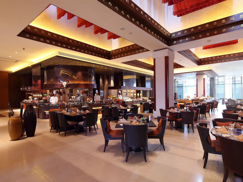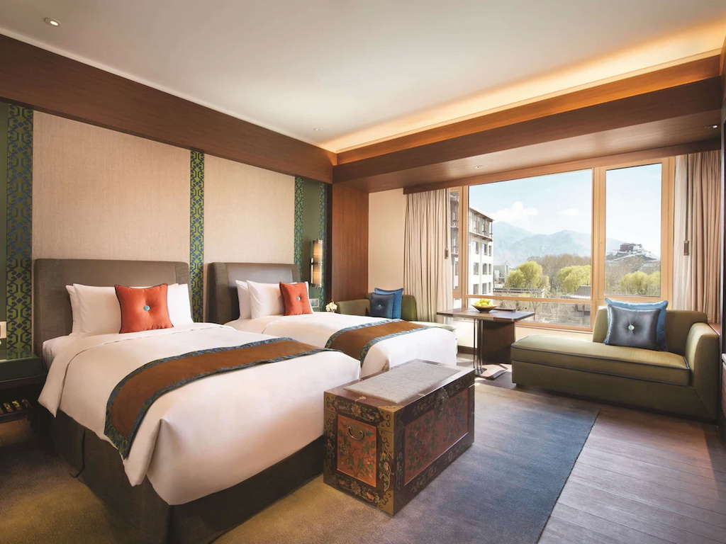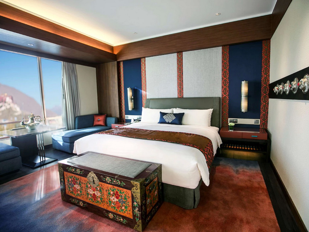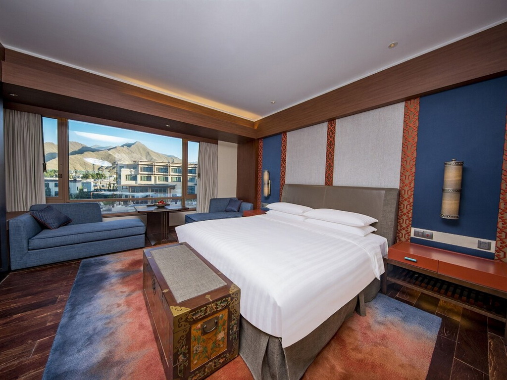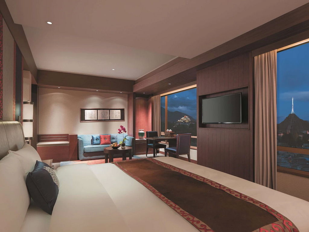 Decorated in Tibetan style, all 262 rooms and 17 suites offer mountain views. Each room features a 40-inch LCD TV, Wifi, an in-room safe, and a mini-bar.