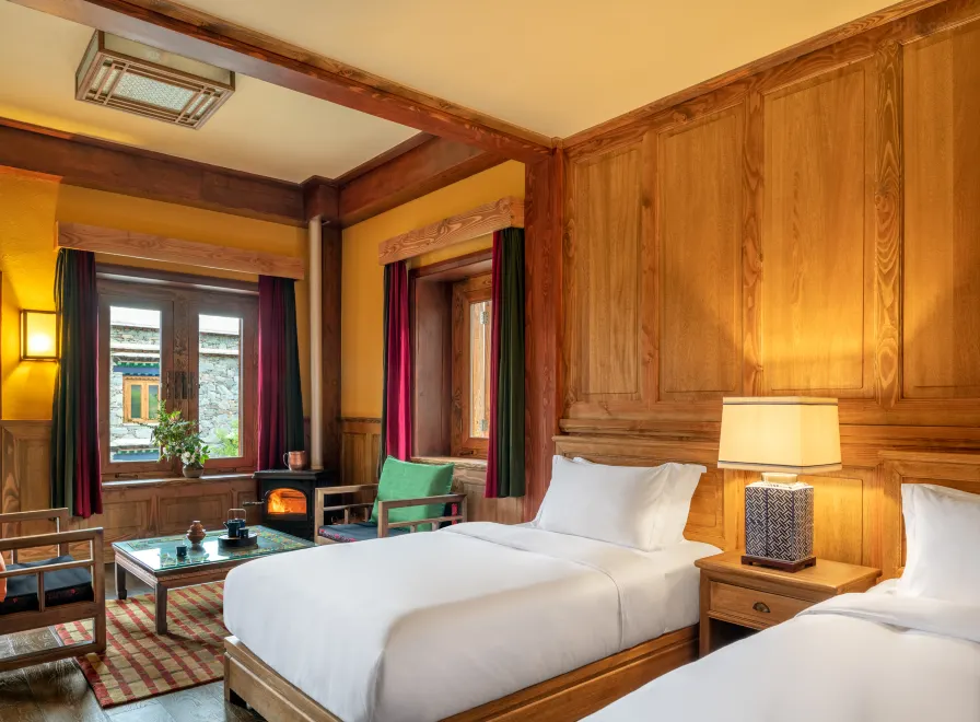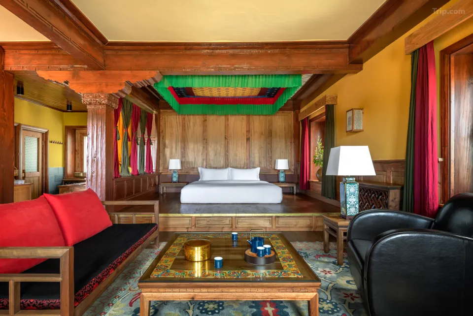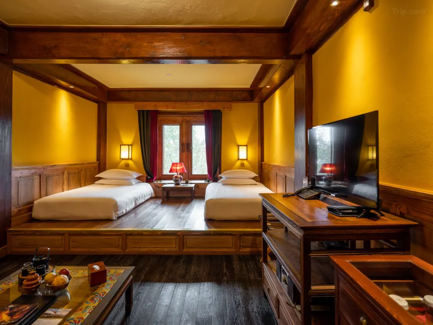 The 92 well-appointed guest rooms feature traditional Tibetan design aesthetics, creating an atmosphere of cultural richness. Each room is equipped with modern conveniences such as WiFi, a coffee/tea pot, an electric kettle, a minibar, a hair dryer, an LCD TV with cable channels, and an in-room safe.