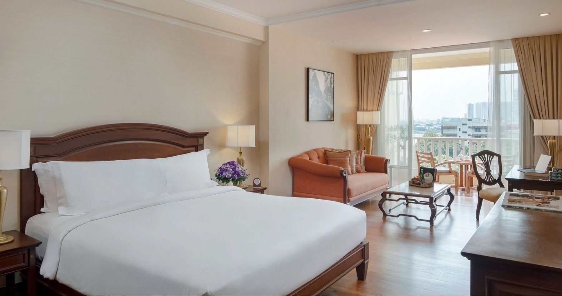 Located in Phnom Penh's Old Quarter, about two miles from the 19th-century Royal Palace and 2.5 miles from the Central Market, Sofitel Phnom Penh Phokeethra is approximately 8.5 miles from Phnom Penh International Airport. Eon Mall is a short walk from the hotel, and Chaktomuk Conference Hall 2 is 2 miles away.   All the 201 luxurious rooms and suites feature a flat-screen TV, DVD player, WiFi, Coffee/tea-making facilities, a mini bar, and a hair dryer.   La Coupole restaurant boasts riverfront views and offers a diverse menu of Asian and Western cuisine. The Do Forni provides an intimate setting for Italian fare. Japanese cuisine is served at Hachi, and the flavors of Cantonese dishes at Fu Lu Zu. Chocolat is also available for those seeking lighter fare and indulgent high-tea options.   The hotel has a fitness center, a swimming pool, and a spa.