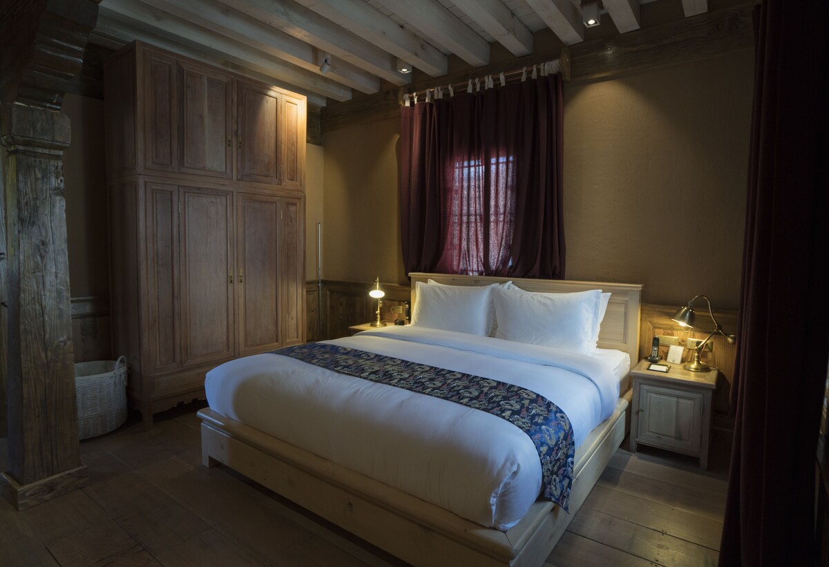 All rooms uniquely combine modern and traditional Tibetan aesthetics, elegantly decorated with wooden floors, Tibetan carpets, and handcrafted copperware.