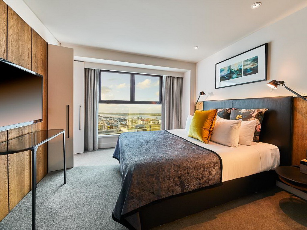It is set in the Central Business District and overlooks Waitematā Harbour. The Grand by SkyCity Hotel is a 10-minute walk from Britomart – Auckland’s central bus and train station. The Intercity Bus terminal is right on the hotel’s doorstep, and Auckland Airport is a 45-minute drive away. All the rooms and suites featured a Nespresso machine, a 55″ Samsung SMART TV with Chromecast, an alarm clock, an in-room safe, a minibar, and a refrigerator. The hotel has an Italian bar/restaurant, a Japanese eatery, and a steakhouse. Other amenities include an indoor pool, a hot tub, a sauna, a spa, and an exercise room.