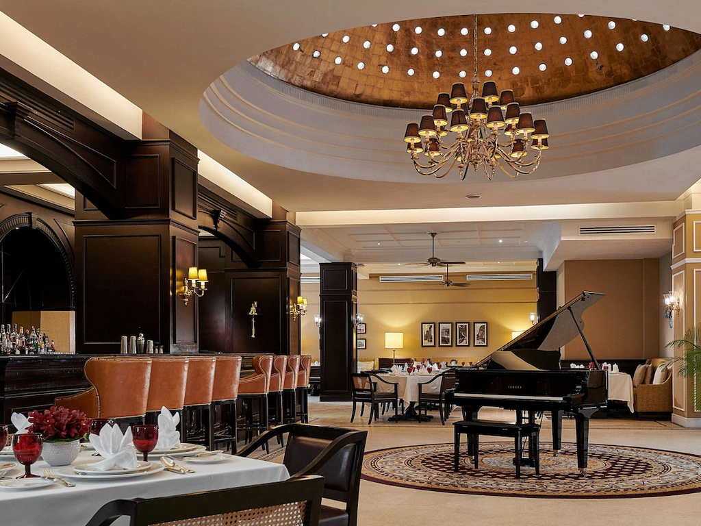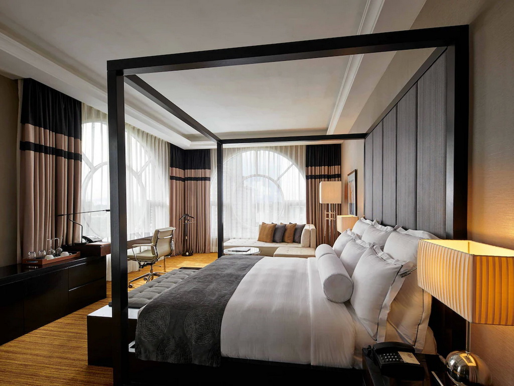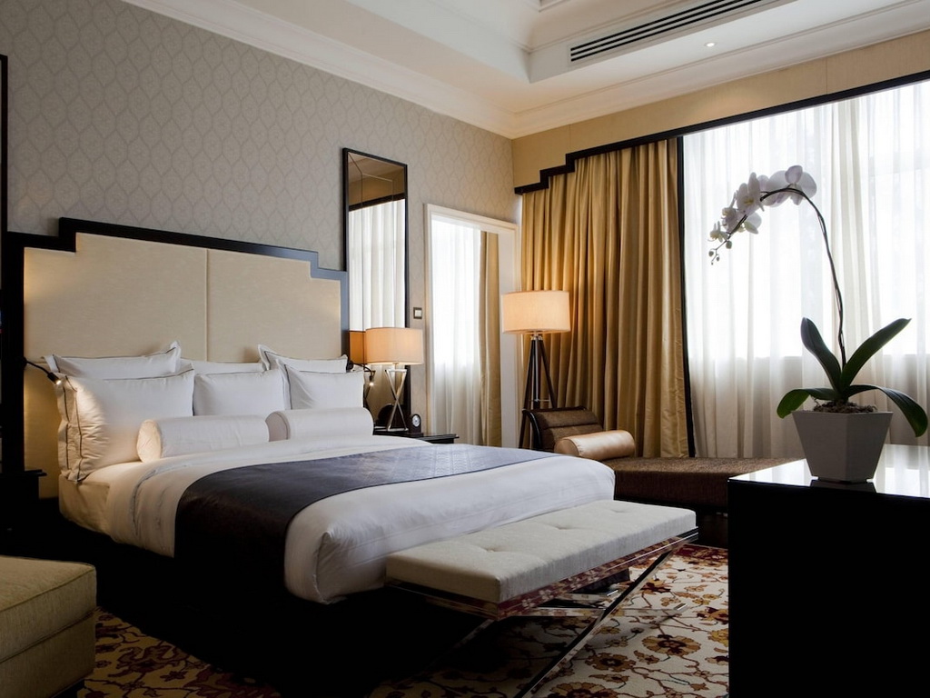 Accommodation is housed in the Majestic Wing and the Tower Wing, separate buildings linked by a glass-enclosed air-conditioned walkway. The Majestic Wing is the original historic hotel building, and the 47 luxurious suites exude old-world elegance and a sense of history. All suites enjoy 24-hour butler service. Choose from a Colonial Suite, Governor Suite, and the most opulent of all, the two Majestic Suites. The Tower Wing features 253 guestrooms and suites and complements the original building in the art deco style with the use of dark marble and polished chrome. The difference is subtle yet distinct, with a more contemporary and sophisticated feel in the design and furnishings, including plush carpeting and elegant four-poster beds. Room categories include Deluxe Rooms, Junior Suites, Grand Suites, and Premier Suites. All guest rooms and suites have a flat-screen TV, personal safe, tea and coffee-making facilities, and a hairdryer.