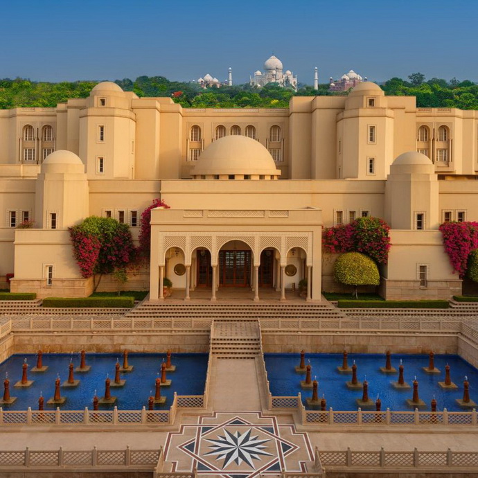 Located just 0.37 miles from the Taj Mahal, The Oberoi Amarvilas offers an unparalleled luxury experience with breathtaking views of the iconic monument from every room and suite. Inspired by Mughal architecture, the hotel features grand pavilions, lush gardens, and elegant interiors that reflect the region's rich heritage. Guests can indulge in world-class dining, rejuvenating spa treatments, and personalized services while enjoying the timeless beauty of one of the world's most famous landmarks.