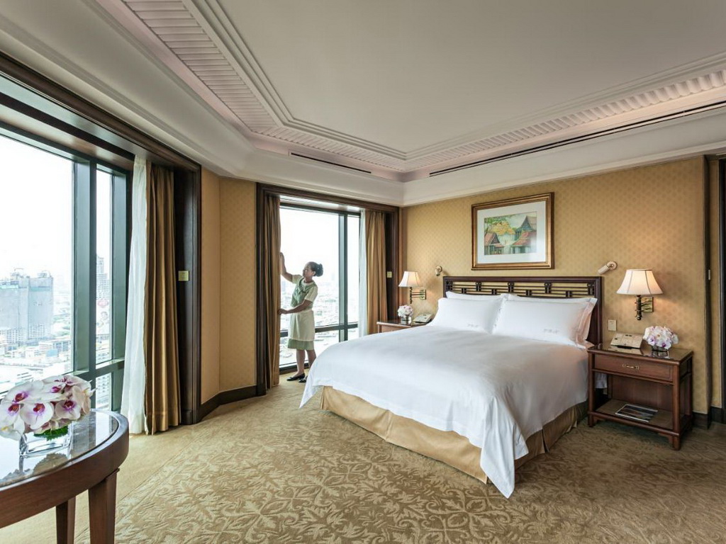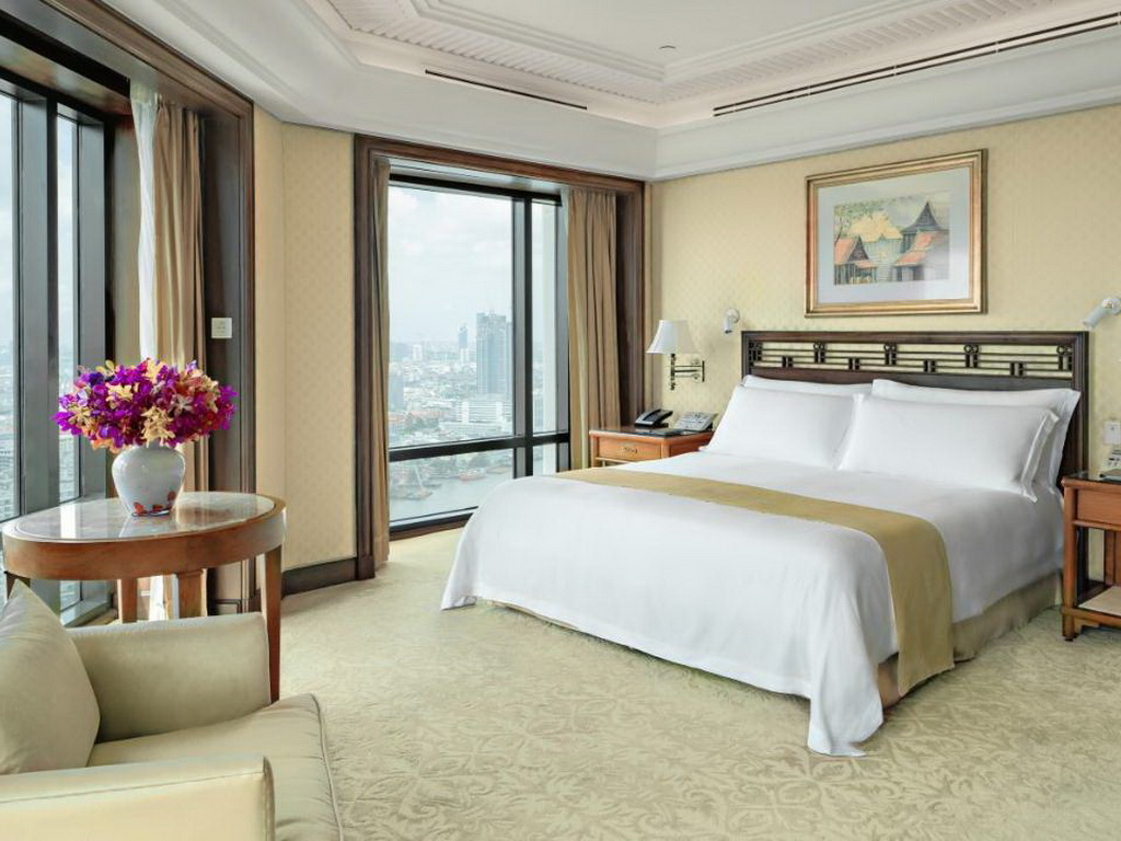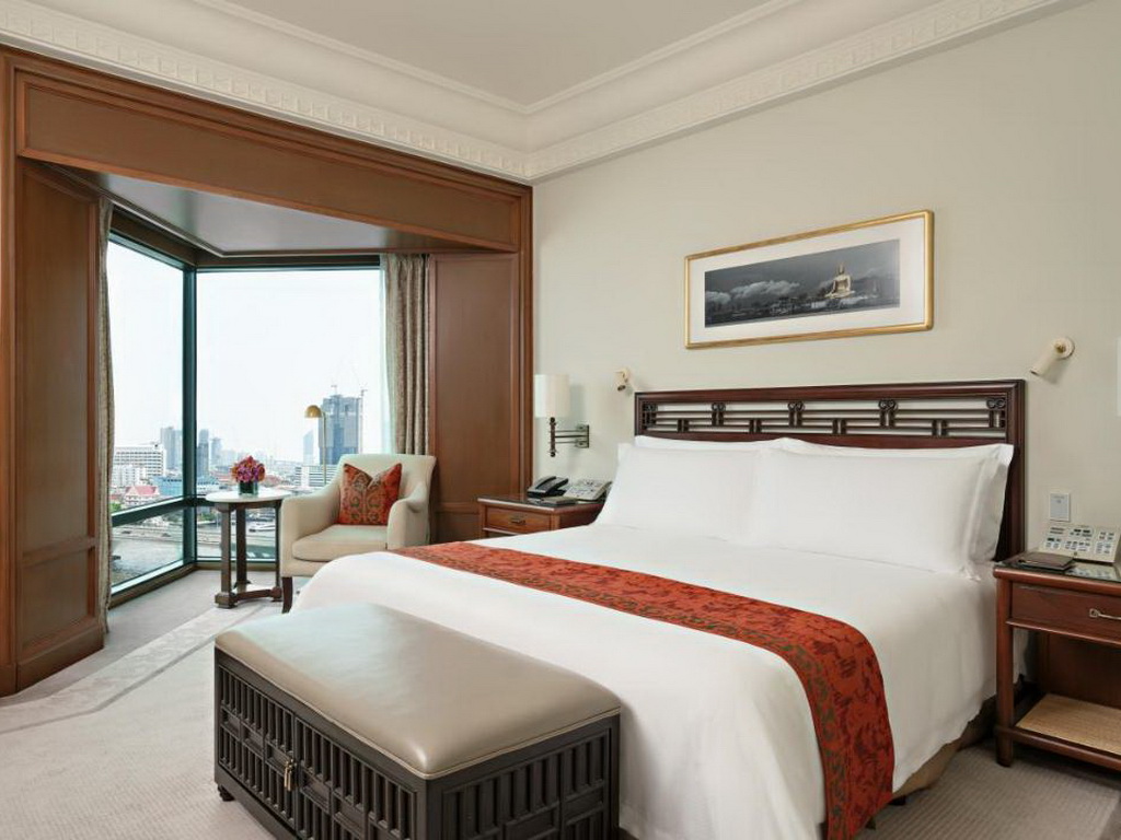 Hotel rooms and suites offer Chao Phraya River and Bangkok skyline views. Each room has a fully stocked mini-bar, WiFi, in-room safe, valet box, Nespresso coffee machine, flat-screen TV, and radio system.