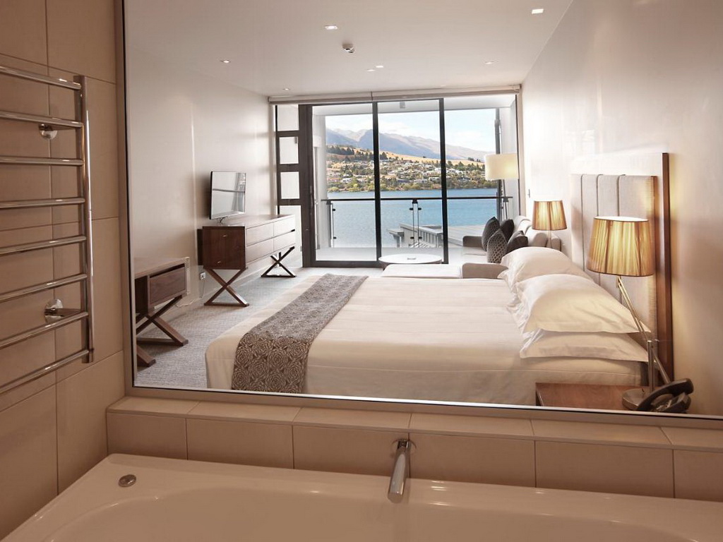 The Rees Hotel Queenstown is a five-star hotel situated right on the shores of Lake Wakatipu, on the South Island of New Zealand. The town center is a 10-minute drive from the hotel. The hotel features a variety of spacious and luxurious accommodation options, including 60 hotel rooms, 90 apartments, and five private Lakeside Residences, all with terraces, showcasing spectacular views across Lake Wakatipu to the alpine panorama of the Remarkable Mountain range. All rooms come with an in-room safe, Wifi, a hairdryer, tea/coffee maker, television with cable/satellite TV, fridge, iron/ and Ironing board. The hotel has a restaurant and a wine lounge that offer international and local cuisine. In-room massage services, including invigorating body and facial treatments, are available at the hotel. Mountain bikes are available for hire.