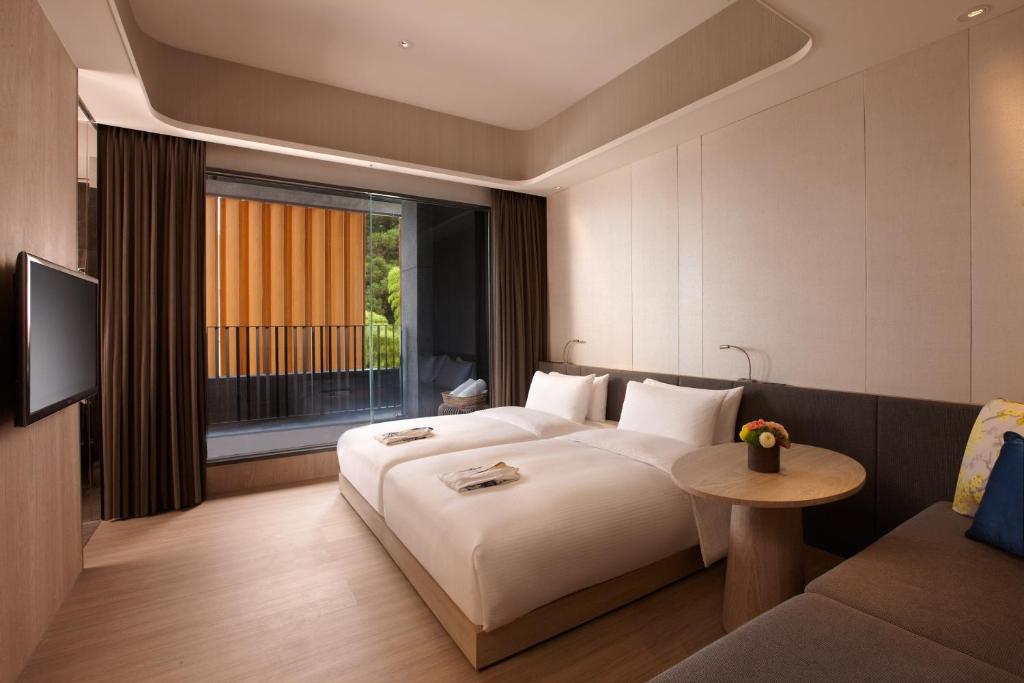 Wellspring by Silks Jiaoxi is a boutique hot spring resort located in the heart of Jiaoxi Township, Yilan County, just a five-minute walk from Jiaoxi Railway Station and about 45 minutes by car from central Taipei. Opened in 2016 as Silks Hotel Group’s first wellness-focused property, the resort features approximately 120 elegantly designed rooms and suites that fuse Japanese-inspired minimalism with modern luxury. Each room features deep-soaking tubs filled with private hot spring water, hydro massage showers, soundproofing, and thoughtful amenities, including yukata robes, chilled facial masks, and handmade Taiwanese pottery. Guests can relax on the rooftop, which boasts an infinity pool with sweeping views of the Lanyang Plain and Turtle Island, two hot-spring pools with jacuzzi jets, and an open-air cinema during warmer months. The on-site Mihan Jiaoxi restaurant specializes in Japanese hot pot and fresh seafood from Yilan. Breakfast features a combination of Western and Taiwanese selections, along with complimentary evening happy hour snacks and drinks. With attentive service, eco-conscious design, and premium wellness offerings, Wellspring by Silks Jiaoxi is a refined escape in one of Taiwan’s most beloved hot spring destinations.